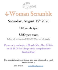 News 2023 4-Woman Scramble July 24, 2023/by Centura Hills Golf Club https://www.centurahills.com/wp-content/uploads/2017/01/logo.png 0 0 Centura Hills Golf Club https://www.centurahills.com/wp-content/uploads/2017/01/logo.png Centura Hills Golf Club2023-07-24 16:04:192023-07-24 16:04:192023 4-Woman Scramble